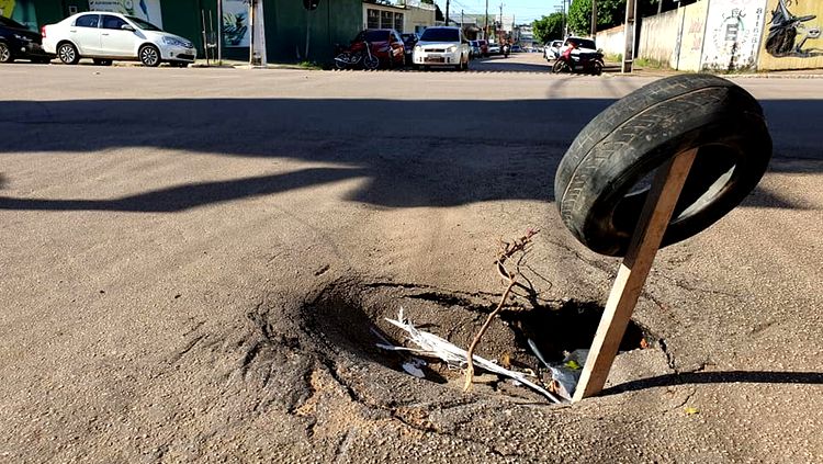 A foto do buraco sinalizado com um pneu chama a atenção, claro, mas, infelizmente, é uma banalidade em nossa capital. De Norte a Sul da cidade existem dezenas de crateras cobertas com entulho. Tem morador de rua que já “mobiliou” o espaço onde vive com geladeira, fogão, sofá, mesas e cadeiras que são usados como sinalização. Quem resolve o problema? Bom, eu e uma enorme parcela da população achamos que deveria ser o poder público mas em uma cidade onde o gestor público não consegue dar conta do básico fica difícil apontar alguém para providenciar a solução.