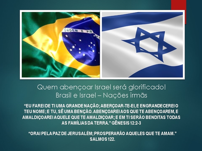 “Eu farei de ti uma grande nação; aberçoar-te-ei, e engrandecerei o teu nome; e tu, sê uma benção. Abençoarei aos que te abençoarem, e amaldiçoarei aquele que te amaldiçoar; e em ti serão benditas todas as famílias da terra.” Gênesis 12:2-3