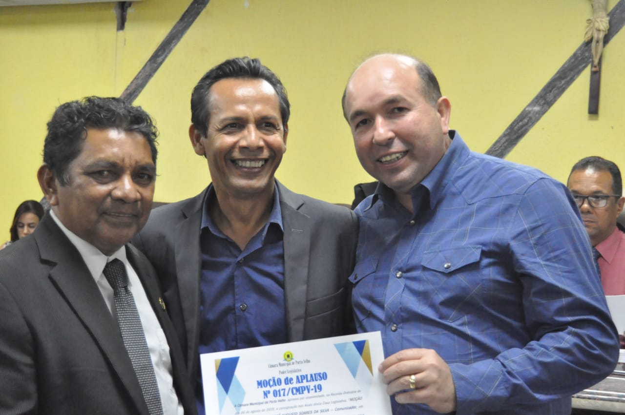 Entrega da MOÇÃO DE APLAUSO nº 017/CMPV/2019, em homenagem ao dia dos pais de autoria dos vereadores Zequinha Araújo (MDB), Jurandir Bengala (PR e Edwilson Negreiros (PSB), realizada hoje (08/08/19).