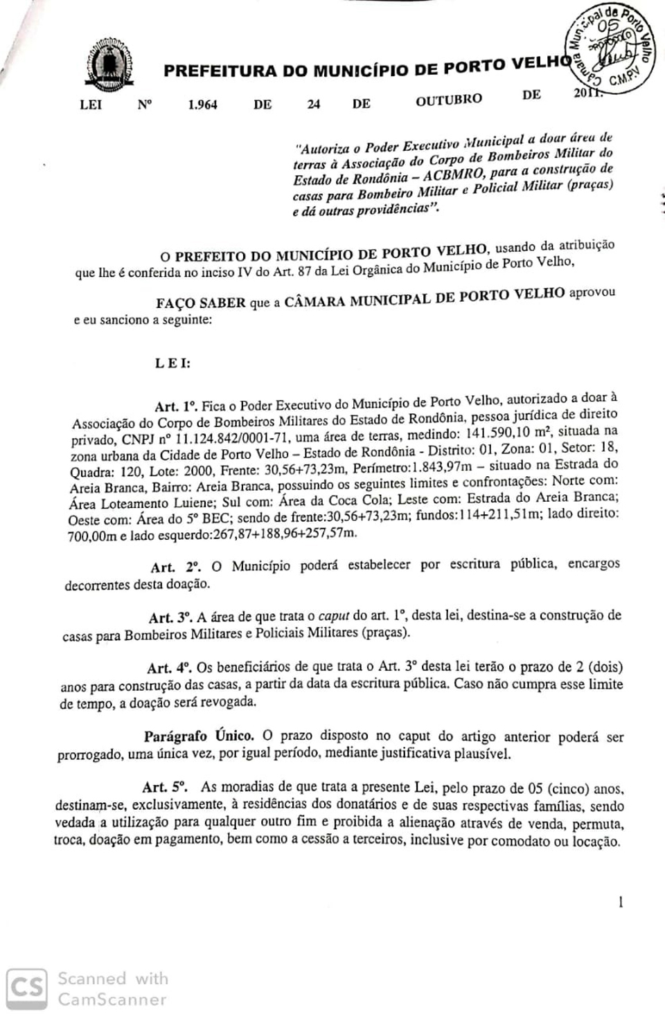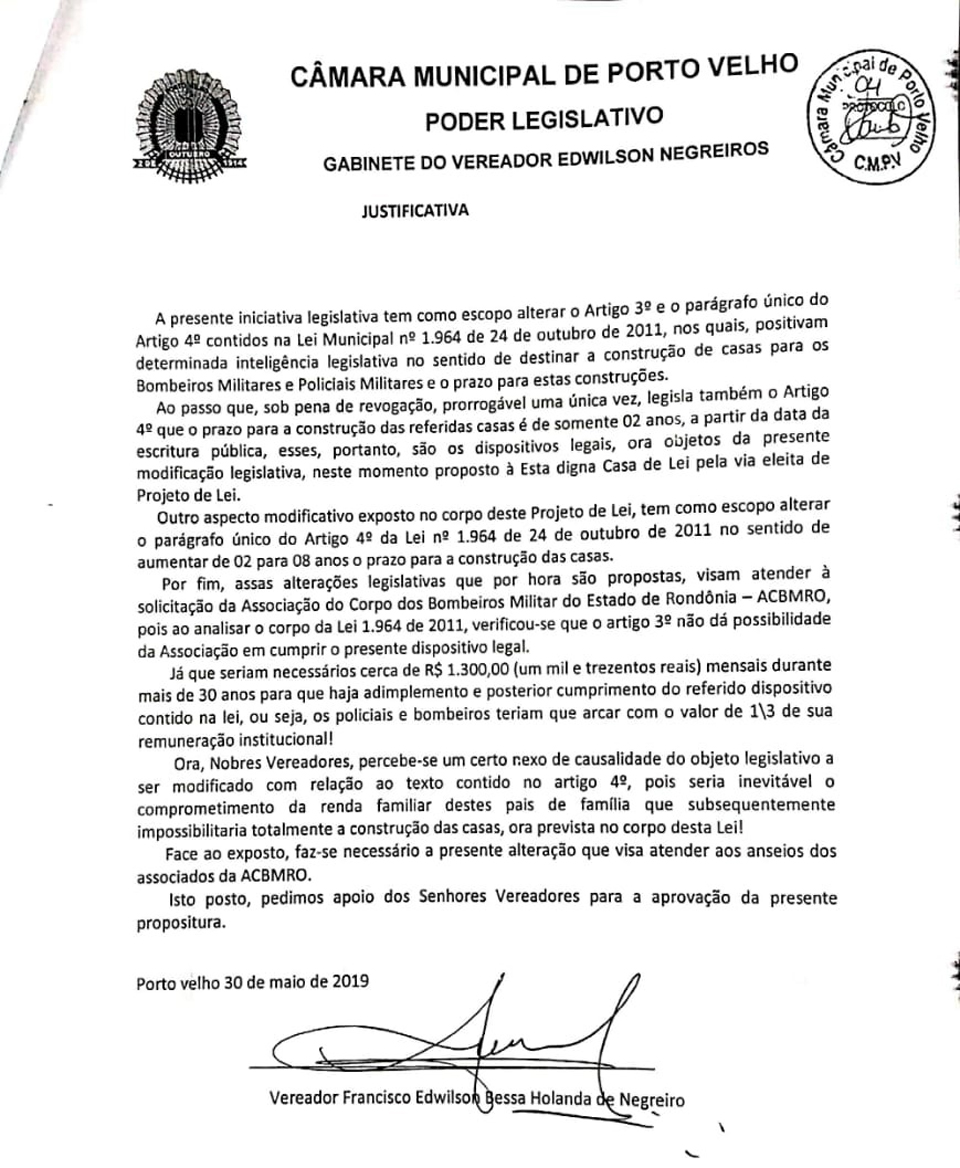 Na manhã desta quarta-feira (28), a Câmara de Porto Velho aprovou alterações na Lei Municipal 1964/11, que, há oito anos, autorizou o Poder Executivo a doar área de terreno à Associação do Corpo de Bombeiros Militares do Estado de Rondônia (ACBMRO).