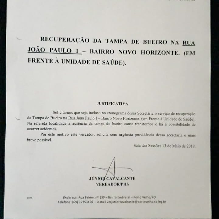 Tal ação gerou pedido de providência que foi atendido pela prefeitura de Porto Velho.