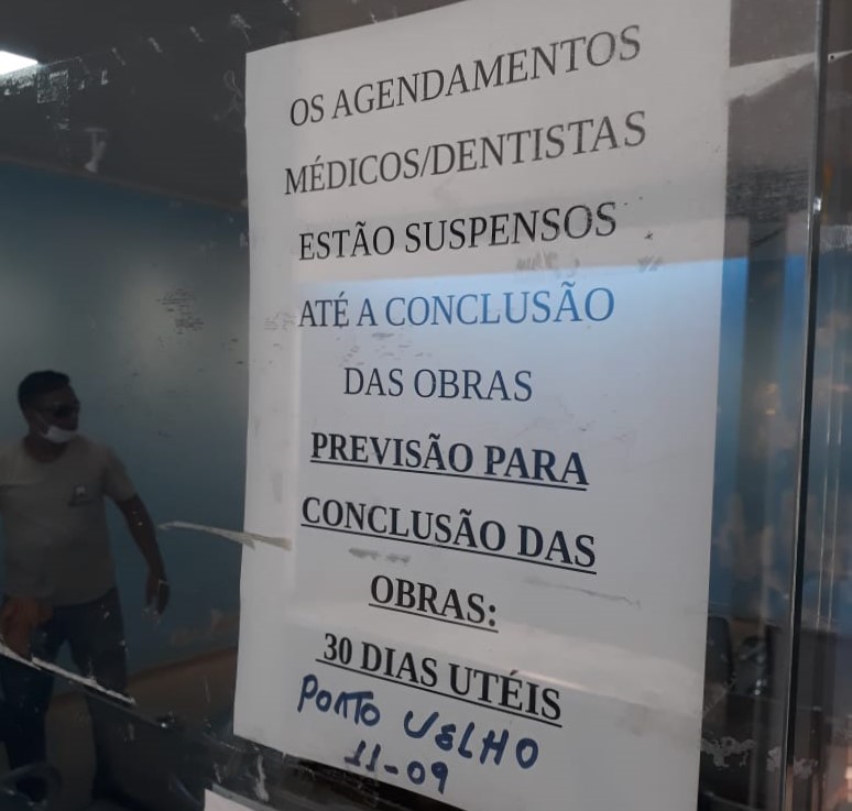 Uma equipe de uma terceirizada realizava a colocação de massa corrida nas paredes para posterior pintura, motivo pelo qual os atendimentos dos consultórios e farmácia estavam paralisados temporariamente.