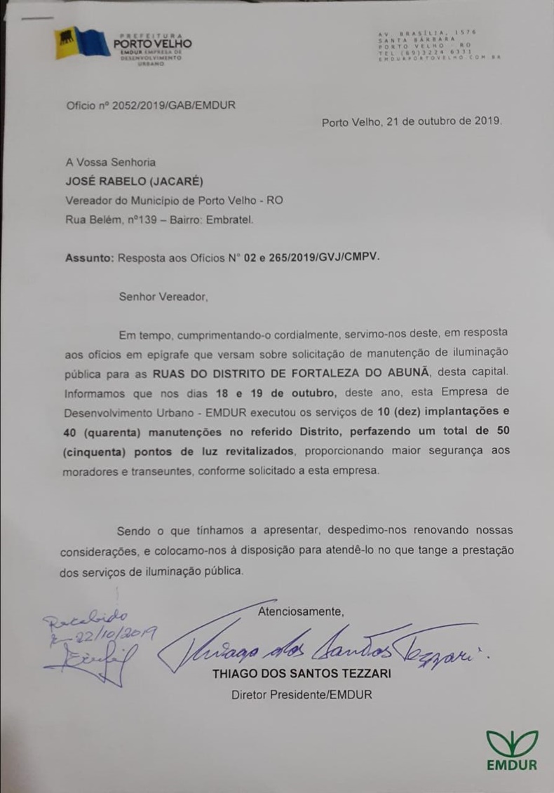 Fortaleza do Abunã recebe 10 novas implantações de iluminação pública e 40 manutenções.