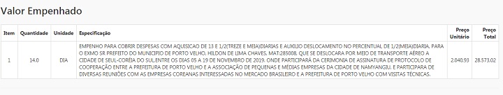 Vale ressaltar que de acordo com o Empenho Nº 005981/2019 emitido no dia 04 de novembro desse ano pela prefeitura de Porto Velho, o ex-promotor passaria treze dias e meio a serviço de Porto Velho na cidade de Seul e distritos próximos.