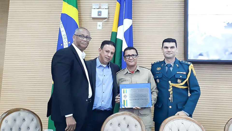 Em solenidade foram entregues 185 votos de louvor a bombeiros militares e o título de Cidadão Rondoniense ao Comandante Geralda CBM, foi entregue também a medalha do MÉRITO LEGISLATIVO ao 3° sargento Gesse de Gois.