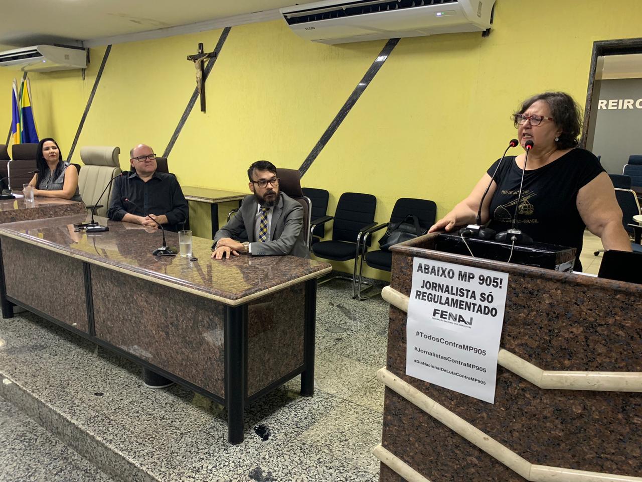 Jornalistas de Porto Velho reuniram-se na Câmara Municipal de Porto Velho, para discutir os efeitos da Medida Provisória 905/2019, que extingue a obrigatoriedade do registro profissional. A reunião contou ainda com a presença de radialistas e publicitários, que também serão atingidos e ampliaram a discussão em torno da regulamentação dos profissionais da comunicação em geral.