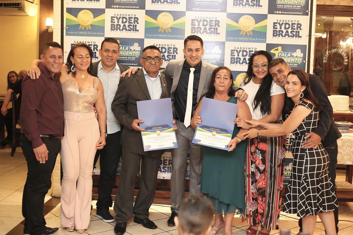 Em uma noite de surpresas e homenagens, o deputado estadual Eyder Brasil (PSL) realizou a entrega do diploma, "Amigo do Gabinete Força e Honra". A solenidade ocorreu na noite de terça-feira (17), em um restaurante na capital.