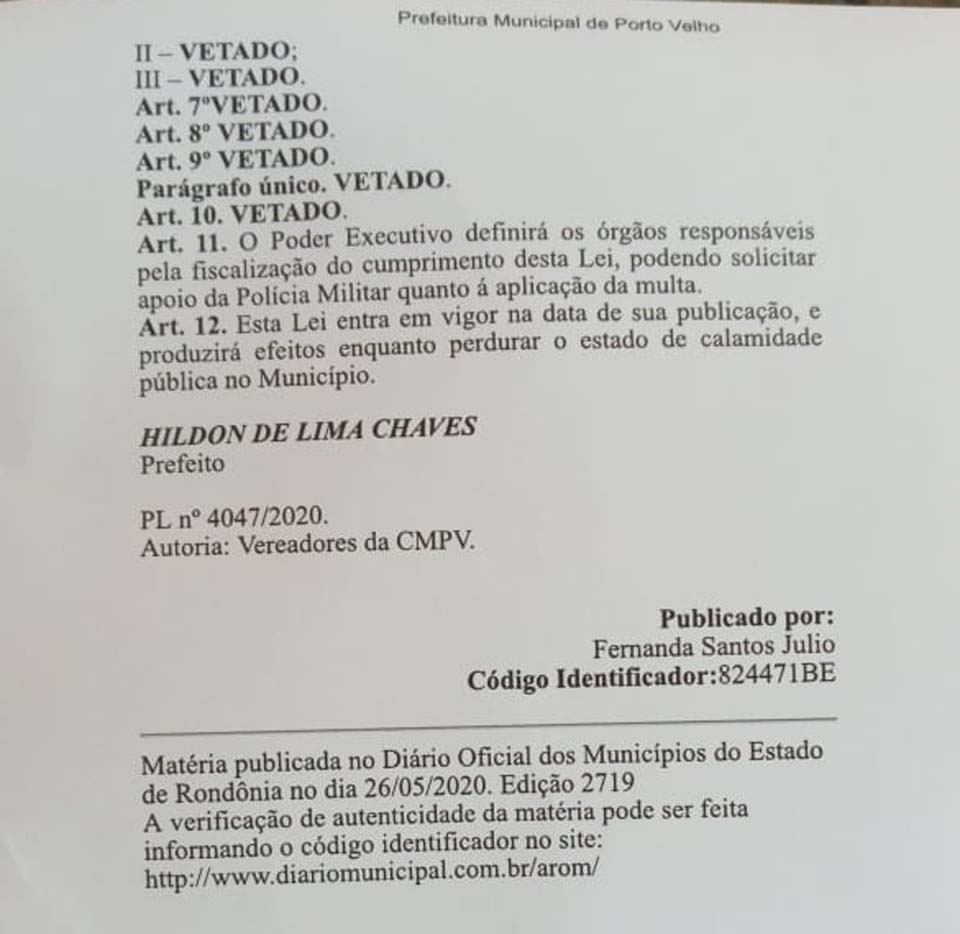 Em nome da Câmara e representando todos os vereadores signatários do projeto em questão, o presidente do Legislativo municipal exaltou a assinatura conferida pelo prefeito Hildon Chaves (PSDB) à lei que impõe multa a quem sair sem máscara na Capital no período da pandemia.