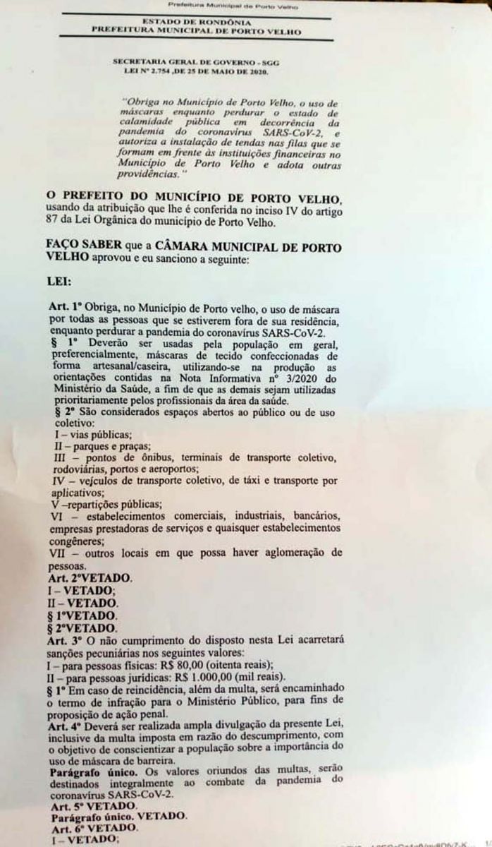 “Precisamos tomar todas as medidas necessárias para passar por essa crise sanitária juntos, auxiliando os órgãos de fiscalização na aplicação da lei. Pessoa sem máscara na rua impõe risco desnecessário a outros cidadãos protegidos”, concluiu o presidente da Câmara de Porto Velho.