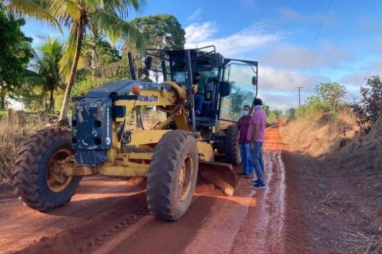 O serviço de patrolamento também está sendo realizado em estradas rurais, garantindo uma melhor qualidade dos serviços dos agricultores na hora de escoarem suas produções.