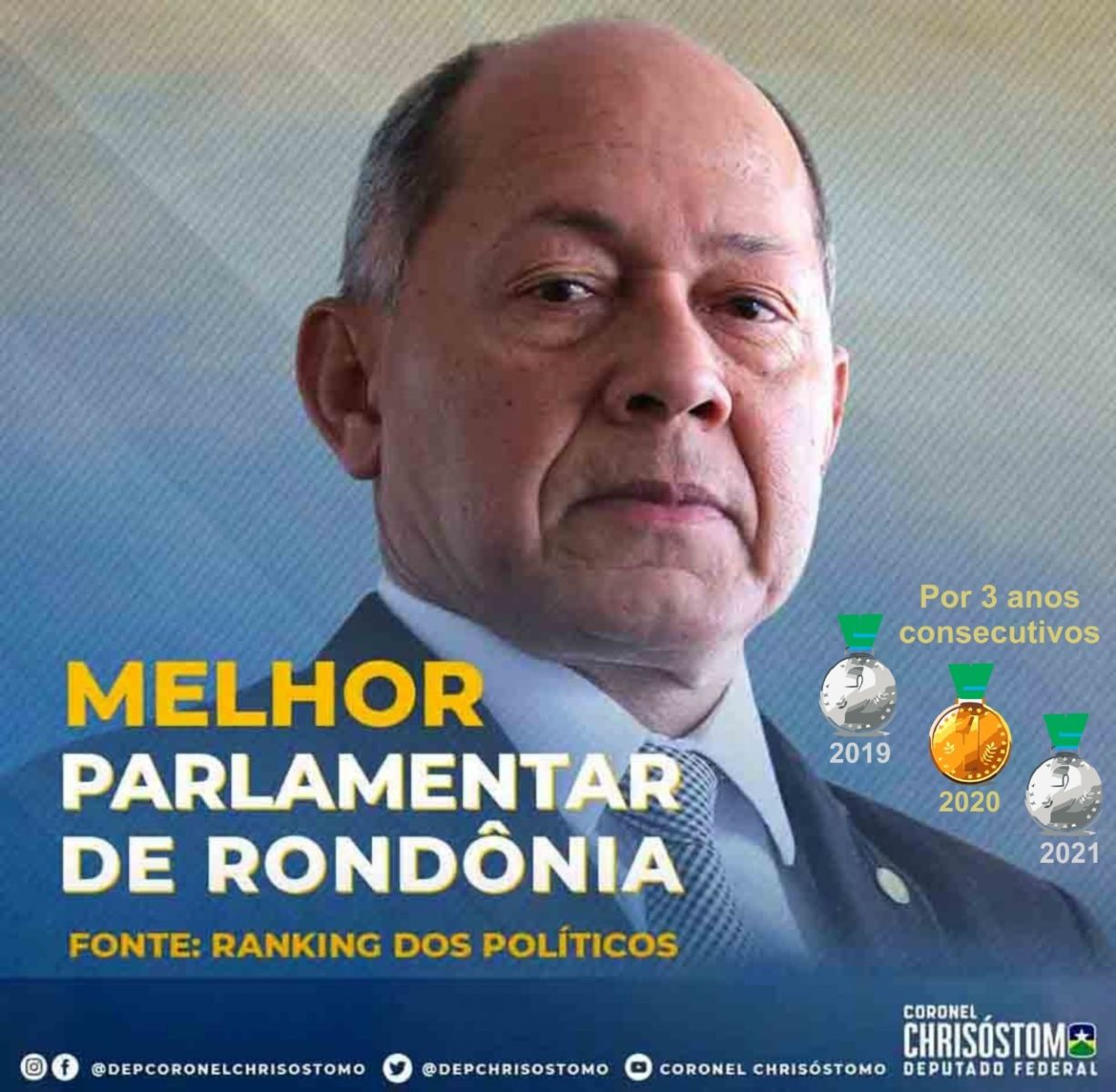 Em 2019 não esperava tal reconhecimento por ser um parlamentar novo de mandato e mais ainda gozar o primeiro lugar em 2020, isto me motivou muito estar por três anos consecutivos entre o primeiro e o segundo lugar.