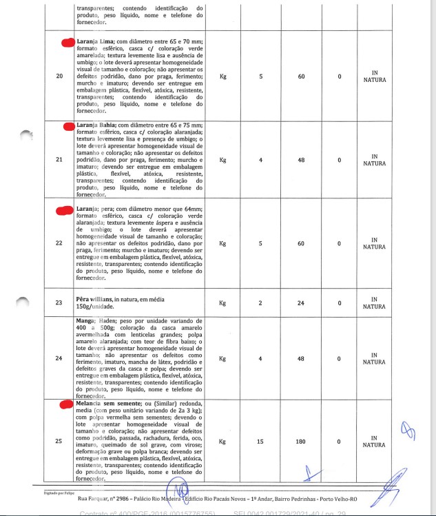 Ainda há um contrato exclusivo para hortifrutigranjeiros (frutas, verduras e legumes) que ainda levam mais R$ 18.580,40 por ano (cerca de R$ 1.548,36 por mês).