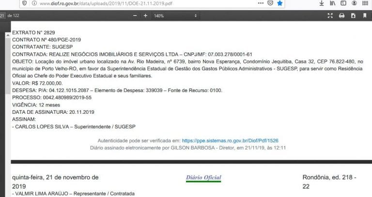 Já no aluguel da mansão onde o governador mora com a esposa e os filhos, a Sugesp informou que “se justifica no fato de que a Residência Oficial do Palácio Rio Madeira não está finalizada. Esse fato também não é inédito na história de Rondônia conforme demonstrado abaixo”.