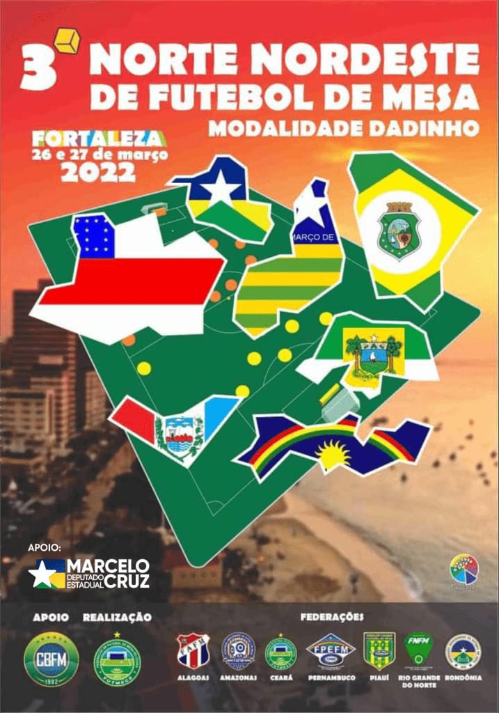 O deputado estadual Marcelo Cruz (PATRIOTA), de modo a estimular o esporte em nosso estado, apoiará o 3.º Norte Nordeste de Futebol de Mesa, modalidade Dadinho, que será realizado em Fortaleza no Ceará, nos dias 26 a 27 de março de 2022. O evento é organizado pela Federação de Futebol de Mesa do Ceará — FUTMECE, que tem como Presidente Rafael Moreira.