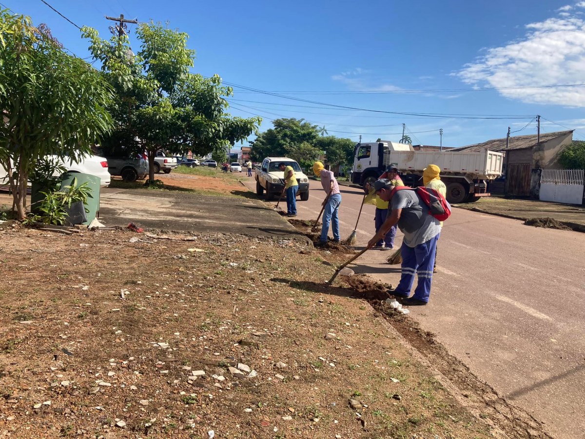 Estão sendo realizados serviços como limpeza de ruas e calçadas, desobstrução de boca de lobo, retirada de lixo e roçagem de matos.