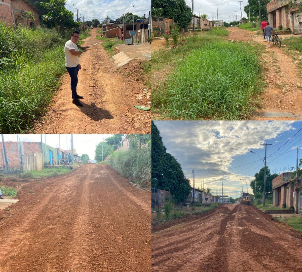 Com as constantes chuvas, se criaram valas e buracos, prejudicando o dia a dia dos moradores do bairro.Por ora, foi realizado o serviço de encascalhamento, todavia, o vereador Edimilson Dourado afirmou que continuará em busca dos demais serviços para as vias.