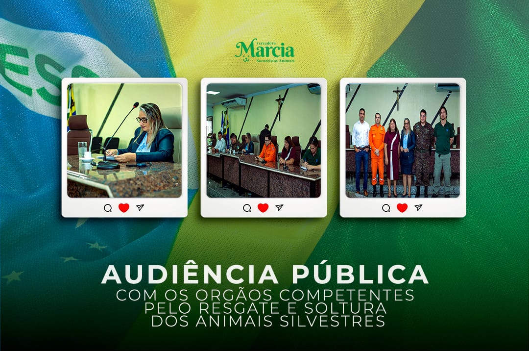 A Câmara Municipal de Porto Velho promoveu Audiência Pública, na última quarta-feira (19/10), às 9h, no Salão de Reuniões “Bohemundo Alvares Affonso”, atendendo ao chamado popular a Vereadora Márcia Socorristas Animais (Presidente da Comissão de Meio Ambiente e Proteção Animal), reuniu representantes da SEMA, IBAMA, Corpo de Bombeiros Militar, Batalhão Ambiental e representante da Ong amigos de Patas, assim como representantes da comunidade em geral para juntos discutirem a respeito da competência publica administrativa para o resgate e cuidados de animais silvestres que são encontrados na área urbana de nossa cidade.