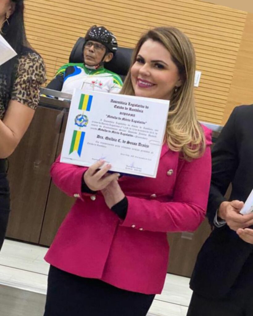 Na última quarta-feira, 7, a advogada Quílvia Carvalho, uma das mais importantes juristas na área de regularização fundiária de Rondônia, recebeu do deputado estadual Jesuíno Boabaid a Medalha de Honra do Mérito Legislativo, em solenidade na Assembleia Legislativa.