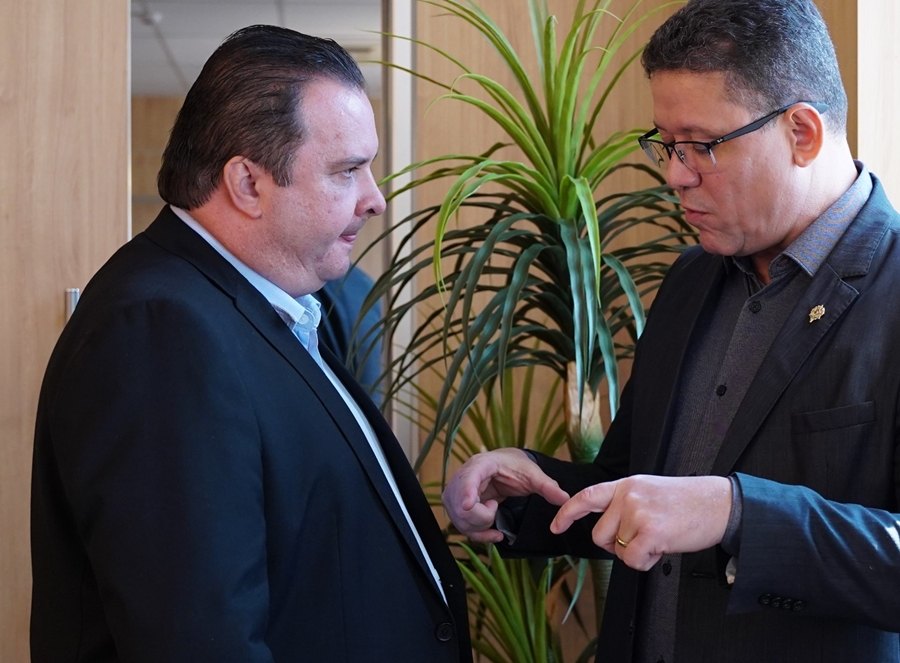 O presidente da Assembleia Legislativa de Rondônia, deputado estadual Marcelo Cruz (Patriota), recebeu na manhã desta segunda-feira (7) o governador de Rondônia, coronel Marcos Rocha (União Brasil), para um momento de sintonia entre os Poderes Legislativo e Executivo na Presidência da Casa de Leis.