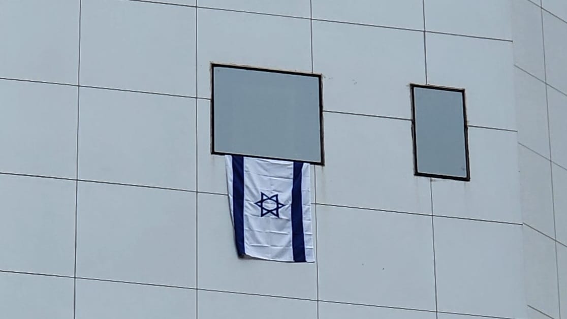 hastear uma bandeira de Israel na janela de seu gabinete na Assembleia Legislativa.