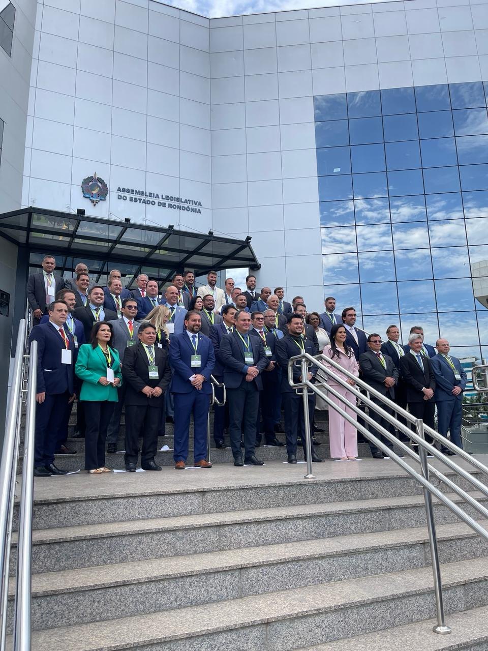 O secretário geral, deputado estadual Affonso Fernandes (PL), convocou o deputado estadual Laerte Gomes para assinar o termo de posse além de realizar a entrega do bóton do Parlamento Amazônico ao parlamentar.
