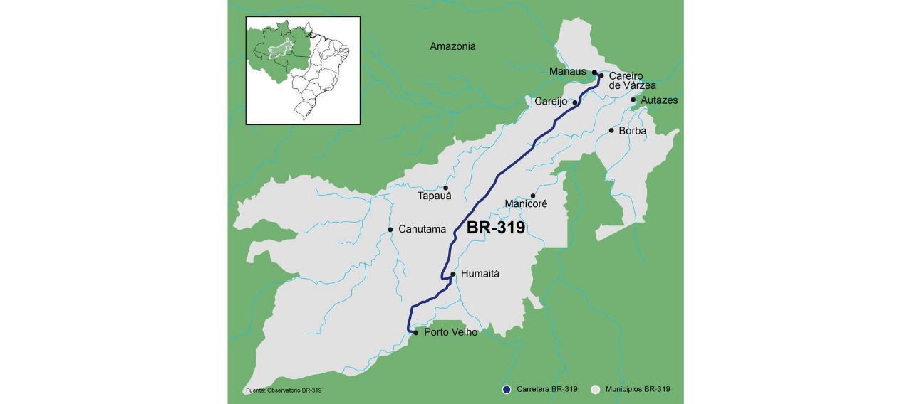 A BR-319 possui mais 800 km de extensão e foi construída na década de 1970. Devido à falta de manutenção, dois trechos da rodovia que mais apresentam problemas são chamado do "meio" ou “meião”, com 405 km de extensão, e o Lote C ou “Charlie”, que compreende 52 quilômetros da rodovia.