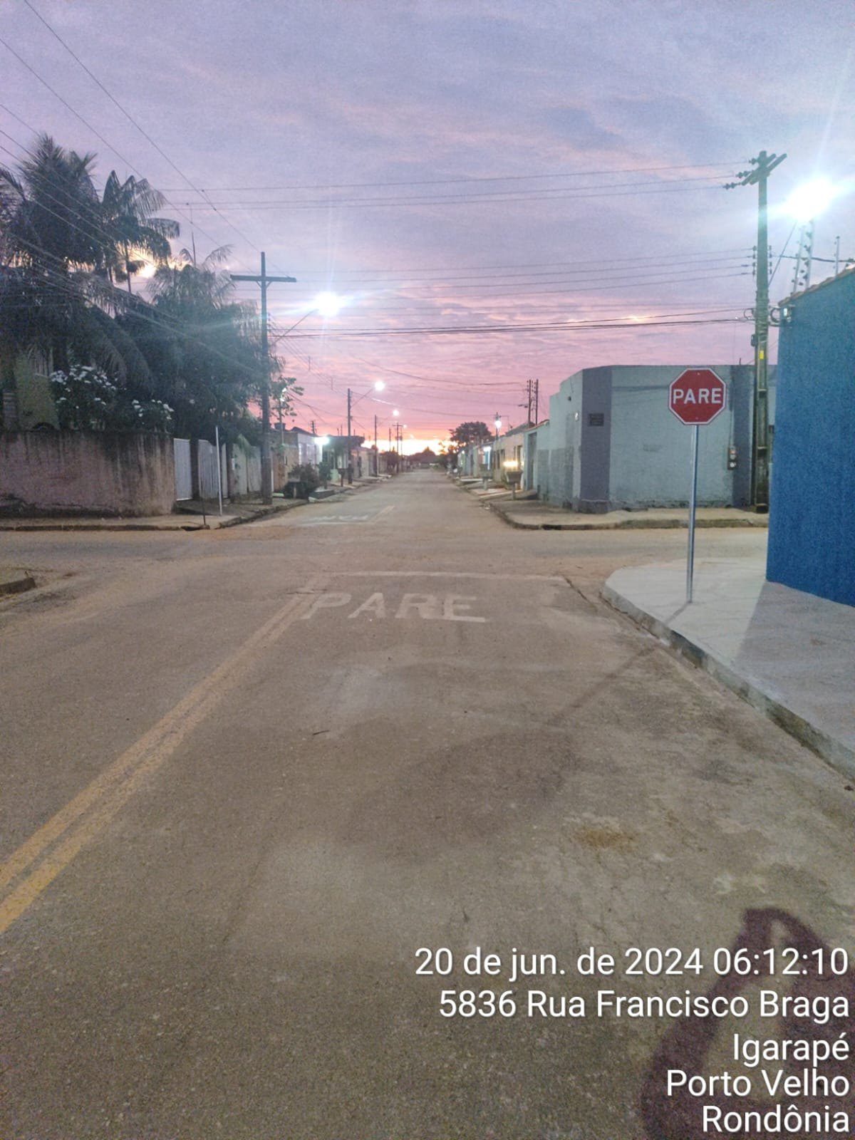 Atendendo à solicitação do vereador Edwilson Negreiros, a Prefeitura de Porto Velho, em parceria com a Secretaria Municipal de Trânsito Mobilidade e Transporte (SEMTRAN), concluiu a instalação de sinalização horizontal e vertical no cruzamento das ruas Francisco Braga com Manoel de Farias, no bairro Igarapé.