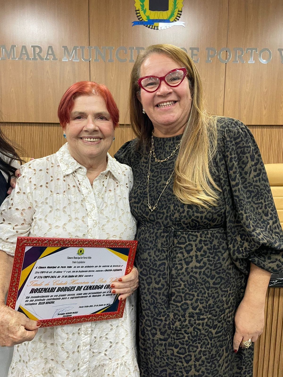Na tarde da última sexta-feira 28.06, a vereadora Ellis Regina entregou o Titulo de Cidadão Honorário a Rosemari Borges de Camargo, de 80 anos, carinhosamente conhecida na capital por “Tia Rose” do Mirante II. Um momento solene que reuniu os grandes amigos e familiares da homenageada, que abraçou Porto Velho como sua cidade Natal, há quase cinco déacadas.
