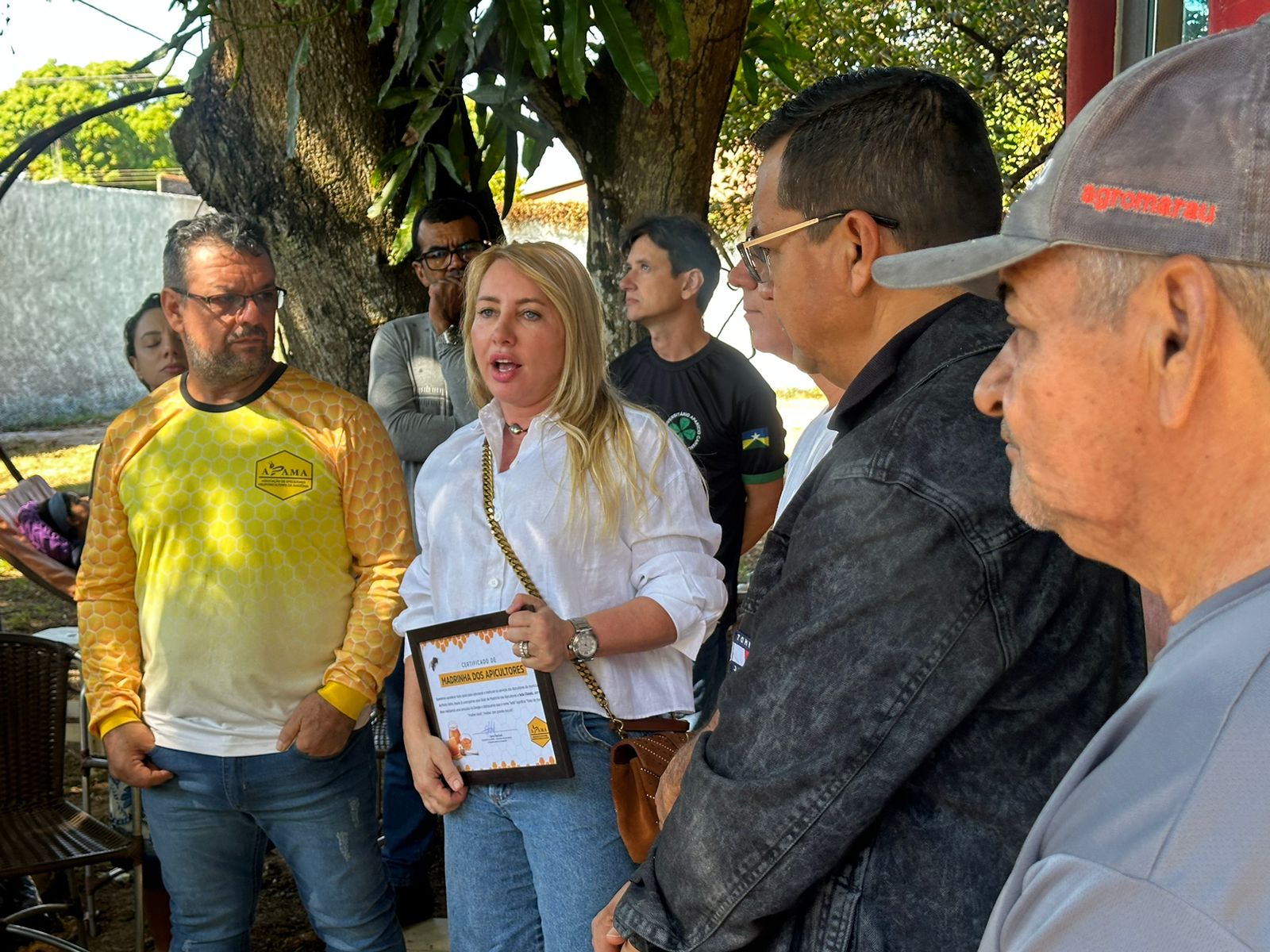 Em reconhecimento ao seu apoio contínuo, Ieda Chaves foi agraciada com um Certificado de “Madrinha dos Apicultores”, entregue pela Apama. A homenagem simboliza a gratidão dos apicultores pela dedicação e apoio dado à entidade ao longo do tempo.