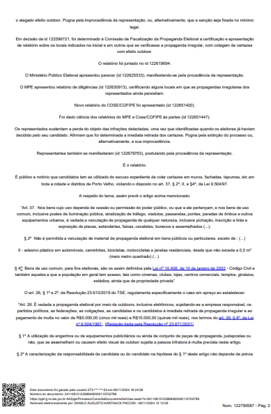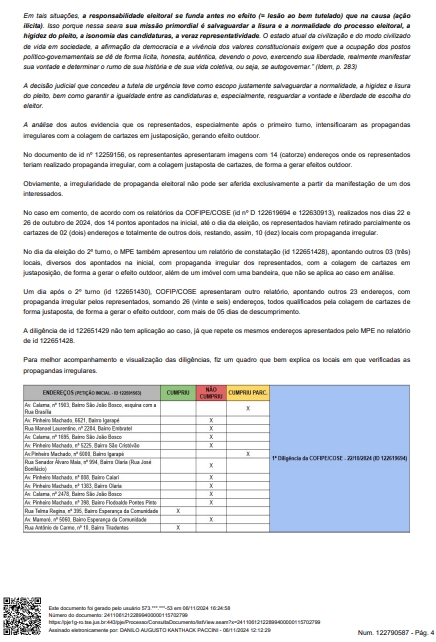 A ação foi proposta pelo partido PODEMOS, do candidato eleito Léo Moraes. Na ação, assinada pelo advogado Nelson Canedo, foi sustentado que XXXXXXX iniciou a partir do segundo turno da eleição verdadeira pichação da cidade, por meio de afixação ilegal de cartazes justapostos em imóveis localizados em pontos estratégicos da cidade (esquinas, avenidas de grande transito de veículos e pessoas etc.), contendo propaganda eleitoral sua, o que estava desiquilibrando a disputa do pleito.