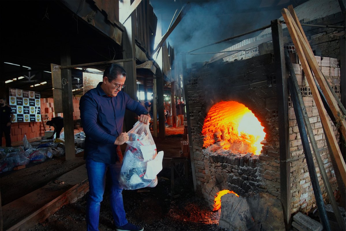 O secretário de Estado da Segurança, Defesa e Cidadania (SESDEC), Coronel Vital, participou ativamente da incineração de mais de 700 quilos de drogas, em uma ação coordenada pelo Departamento de Narcóticos da Polícia Civil de Rondônia (DENARC/PCRO). A operação foi realizada com o apoio do Ministério Público de Rondônia (MPRO), representado pelo Promotor Evandro, e do Tribunal de Justiça de Rondônia (TJRO).