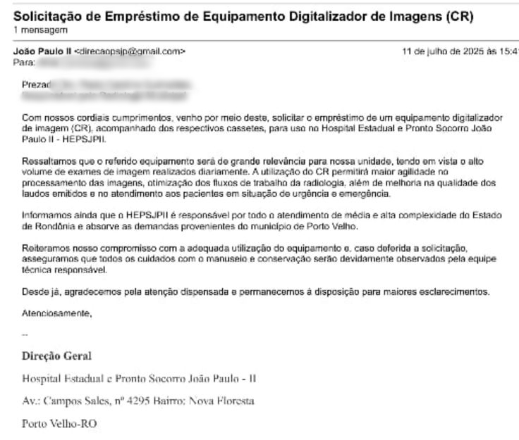No último dia 11, o governo estadual, por meio da Secretaria de Estado da Saúde (Sesau), solicitou formalmente à gestão municipal de Porto Velho o empréstimo de um equipamento digitalizador de imagem (CR) para o João Paulo II, evidenciando a gravidade da situação. A ausência de equipamentos funcionais em diversas unidades de saúde do estado, incluindo a Assistência Médica Intensiva (AMI) e o Hospital de Base Ary Pinheiro, amplia os desafios para atender a demanda crescente.