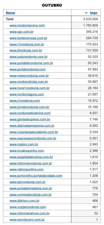 Estes números reais e exclusivos mostram liderança absoluta entre os meios de comunicação eletrônicos mais acessados do estado, segundo estes dados de sistemas de contagem de audiência utilizados por agências de publicidade que atendem órgãos públicos de Rondônia.