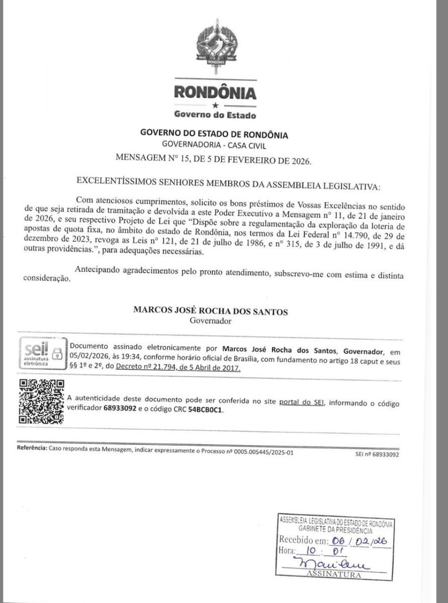 A retirada da mensagem encerra, ao menos por ora, a tentativa de regulamentar apostas em Rondônia, mas o parlamentar afirma que seguirá vigilante para impedir que iniciativas semelhantes avancem sem amplo debate e transparência.