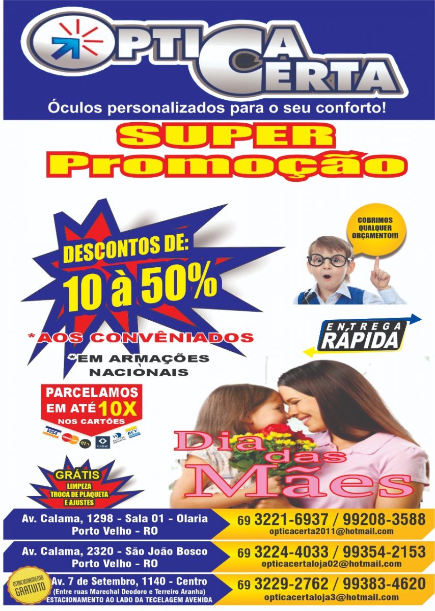 A Optica Certa é a escolha ideal para seu conforto e tem três lojas em Porto Velho.