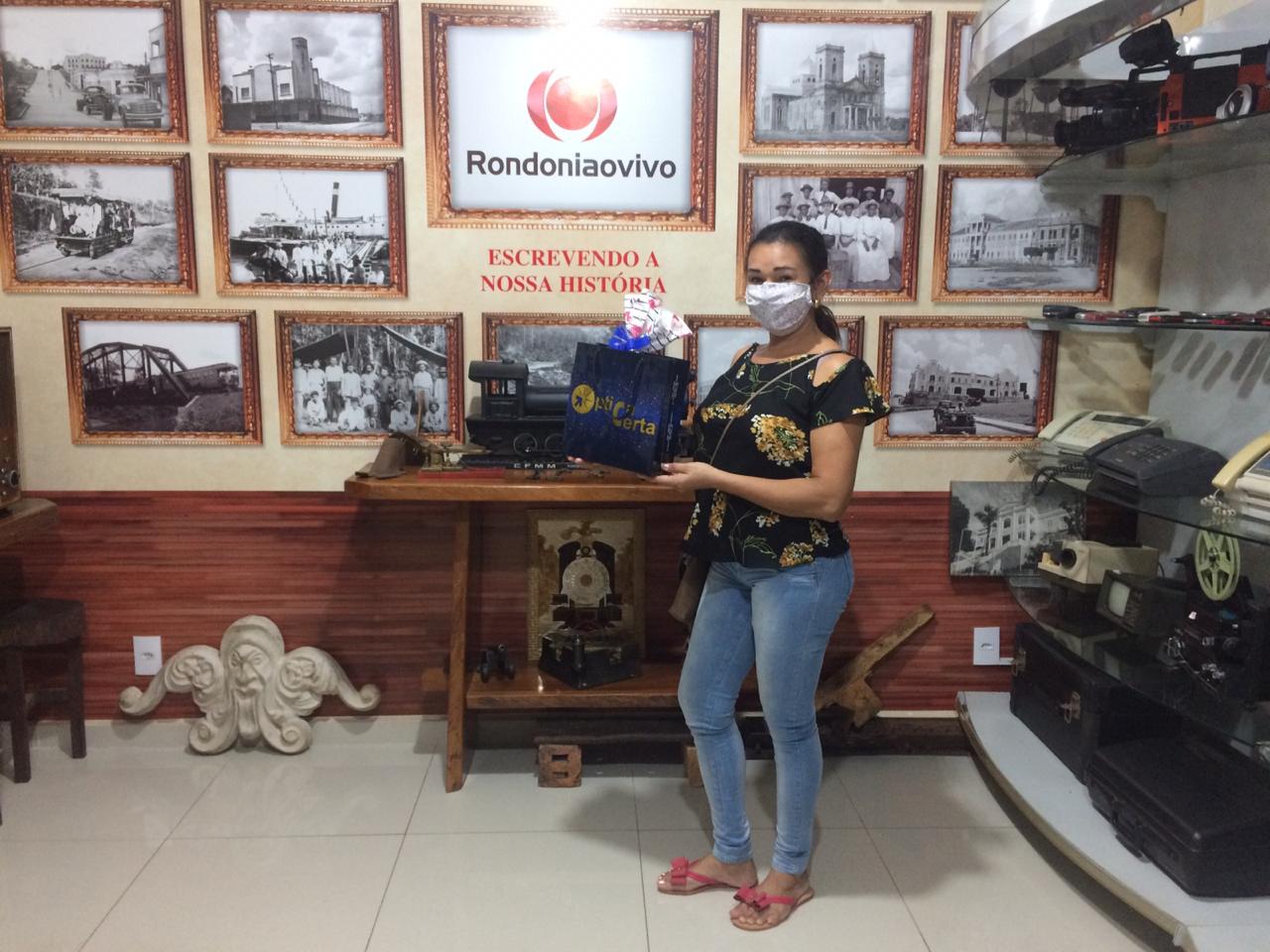O sorteio foi realizado dia 09/05 às 10hs e a ganhadora retirou o prêmio na sede do Rondoniaovivo.