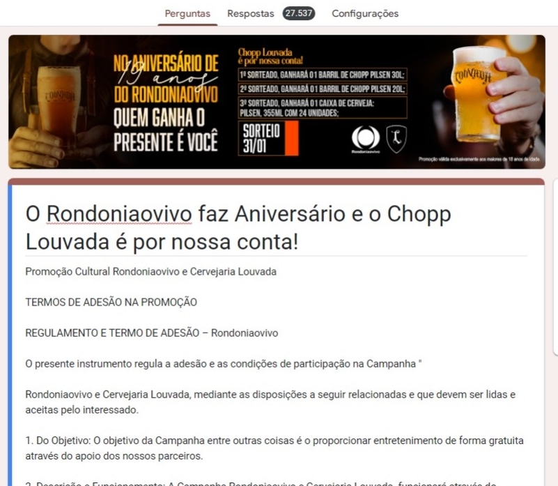 ANIVERSÁRIO RONDONIAOVIVO: Confira os ganhadores do sorteio do Chopp Louvada
