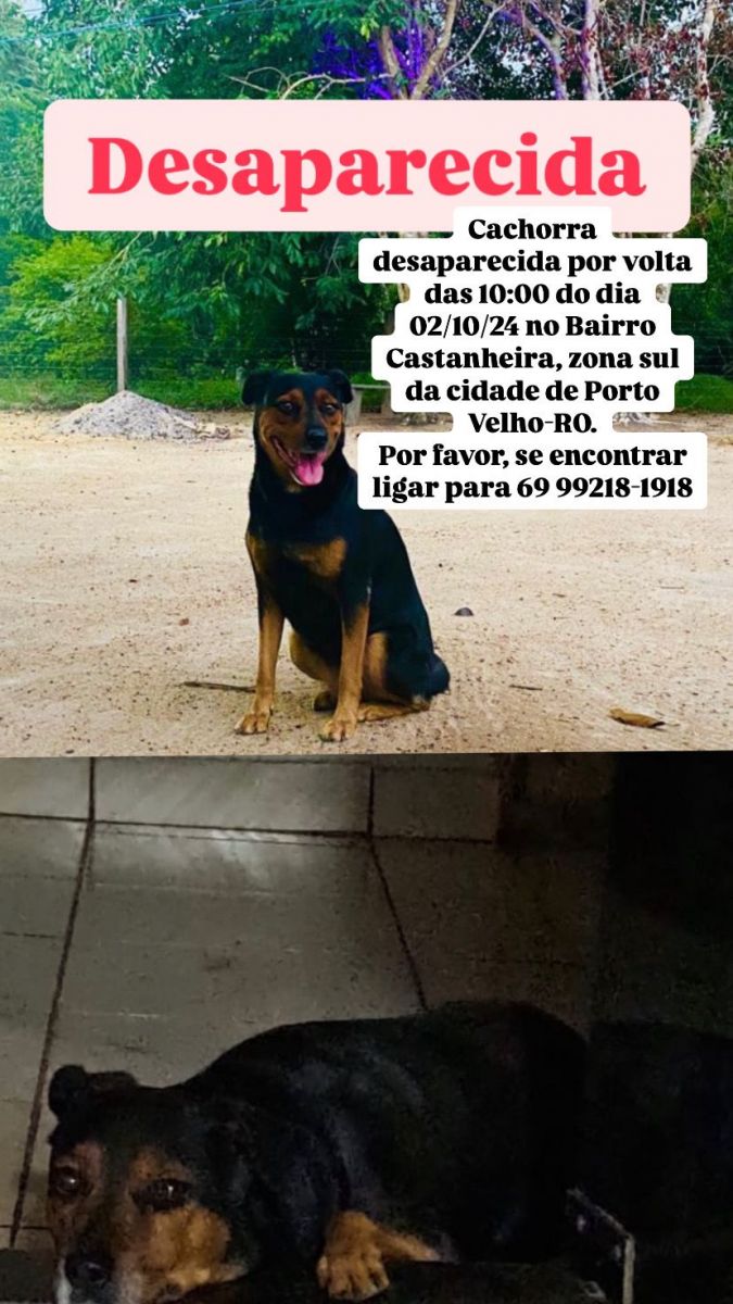 Na manhã da quarta-feira, 2 de outubro, a cadela Aila desapareceu nas imediações do bairro Castanheira, zona Sul de Porto Velho, por volta das 10h. Sua tutora está desesperada e pede a colaboração da comunidade para ajudar a localizar o animal.