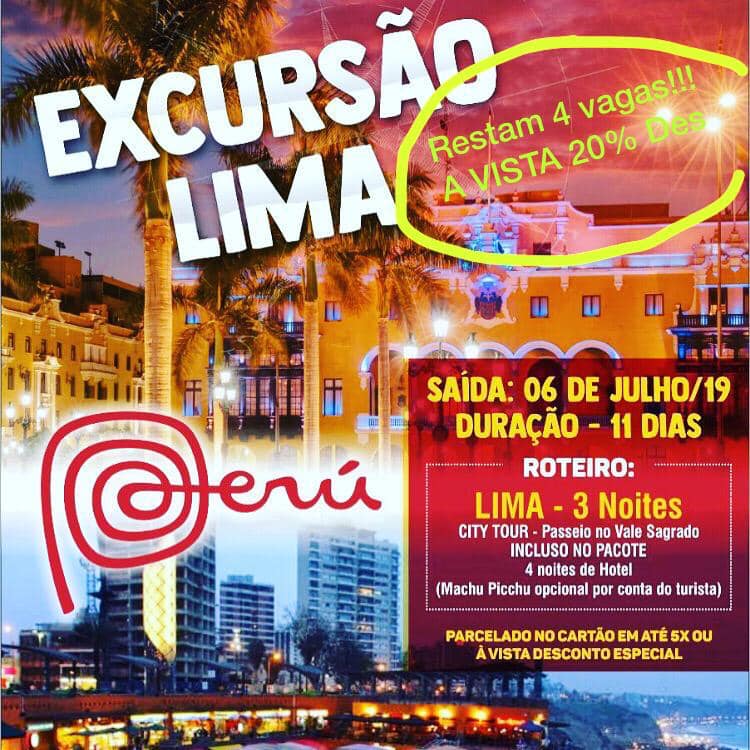 Saída de Lima às 09h00 com retorno direto a Rio Branco/AC.