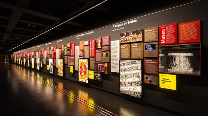 Um dos principais espaços expositivos do Museu desde sua inauguração, também teve sua tecnologia multimídia renovada. Oito totens interativos com recursos audiovisuais e painel explicativo expõem as influências das principais línguas e povos que contribuíram para formar o português do Brasil. A navegação pode ser feita por palavra, descobrindo sua forma e pronúncia na língua de origem, ou por povos, investigando sua cultura, tradições e sua chegada no Brasil.