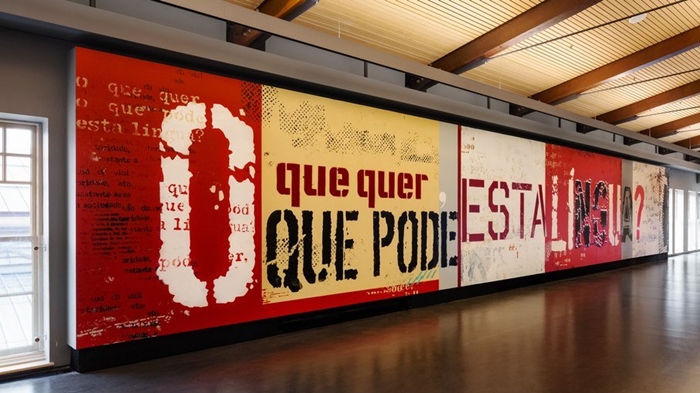 A instalação que se estende por toda a Grande Galeria - mimetizando a linha do trem da Estação da Luz alguns andares abaixo - teve seu conteúdo todo renovado. Para convidar o visitante a refletir sobre a linguagem na vida urbana contemporânea, as telas "se transformam" em paredes, murais, outdoors. Como nas ruas das cidades, ali surgem a poesia-relâmpago dos fragmentos verbais eruditos e populares: expressões, provérbios, pichações, poemas, propaganda, inscrições anônimas da grande cidade, em desenhos surpreendentes.