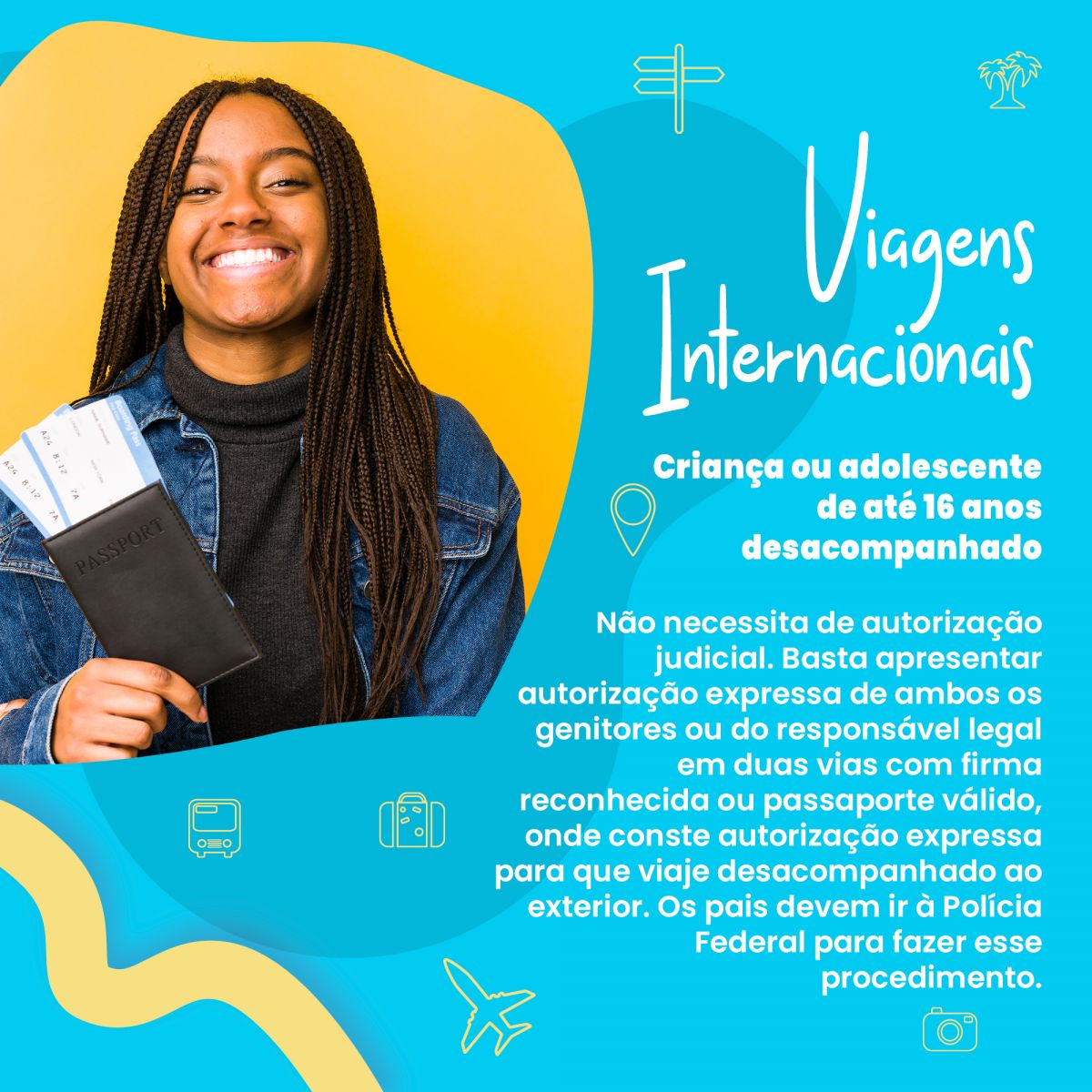 Não é necessária autorização dos pais e nem judicial para criança ou adolescente que apresentar passaporte válido, onde conste autorização expressa para que viaje desacompanhado ao exterior. Os pais devem ir à Polícia Federal para fazer esse procedimento.