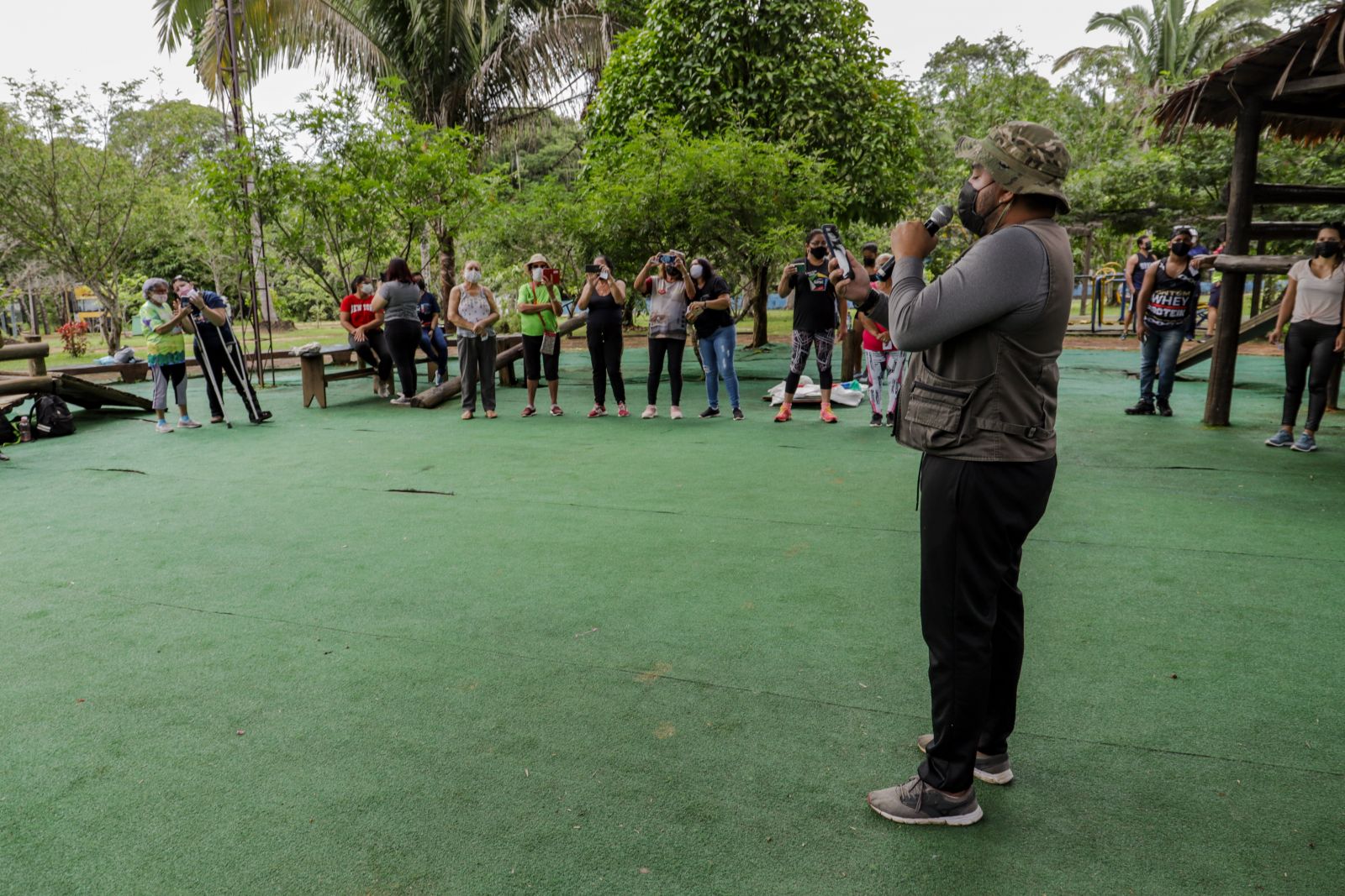 Além da caminhada pela trilha ecológica do parque com 2,4 quilômetros de extensão, a programação contou com atividades de alongamentos com o auxílio de educadores físicos e dicas de fotografia de ecoturismo feitas com o celular.