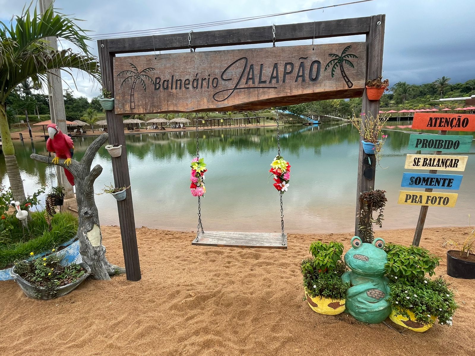 O Balneário Jalapão também conta com uma estrutura completa para receber os visitantes, com banheiros, chuveiros e quiosques para alimentação.
