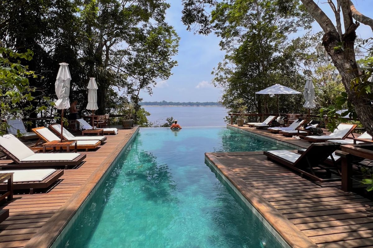 Para vivenciar a Floresta Amazônica do amanhecer ao anoitecer, nada como se hospedar em um hotel de selva em Manaus. Há vários deles espalhados pelas margens do Rio Negro — alguns mais simples e econômicos, outros super sustentáveis e com um toque de exclusividade. Entre os mais famosos, estão Juma Amazon Lodge, Dolphin Lodge, Uiara Amazon Resort e Anavilhanas Jungle Lodge. Além do contato com a natureza, quase todos oferecem passeios por igarapés (na cheia), caminhadas na floresta (na seca), focagem de jacaré e outras atividades.