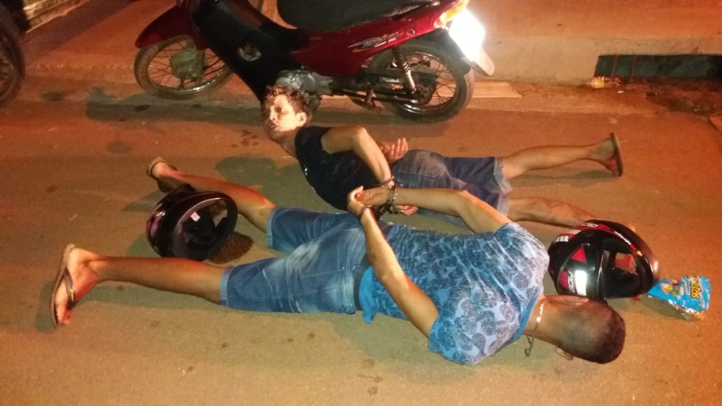 Uma guarnição da Polícia Militar do 9° Batalhão se deparou com a dupla em uma motocicleta Honda Biz de cor vermelha transitando pela Rua Laranjeiras