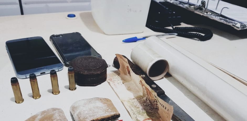 Os militares foram até a casa e prenderam o traficante com dinheiro, material para embalagem de droga e quatro munições de calibre 38