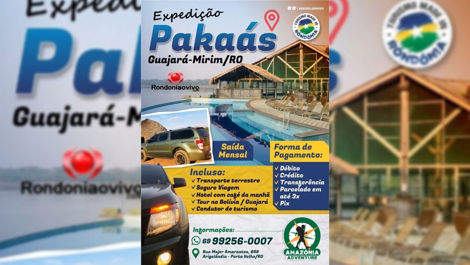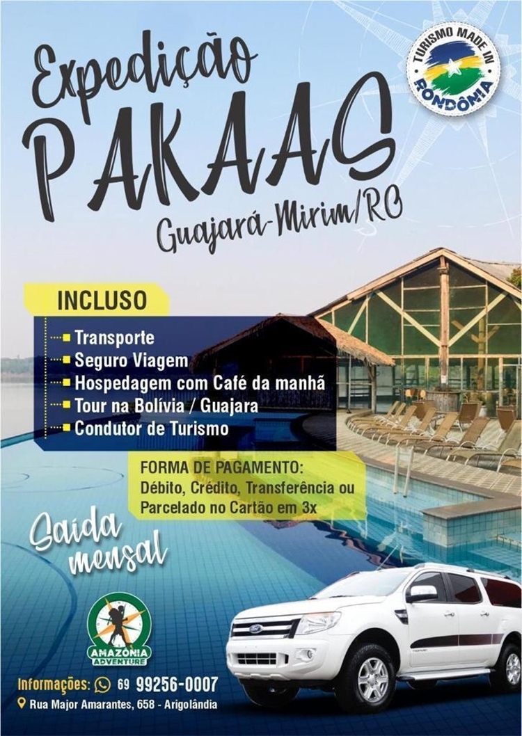 A Amazônia Adventure com o objetivo de fomentar o Turismo Regional estará programando nova saída para o Hotel de Selva Pakaas Palafitas Lodge na cidade de Guajará-Mirim/RO