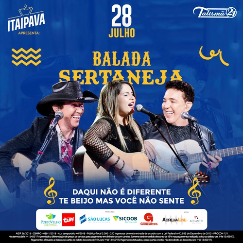 O Rondoniaovivo em parceria com a Cerveja Itaipava e Tupi Refrigerantes vai levar 20 internautas para curtir uma noite de muita "Balada Sertaneja", serão sorteados 10 pares de ingressos, para participar é só Clicar Neste Link.