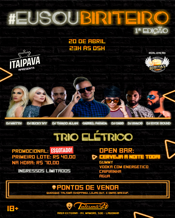 Reúna os amigos e amigas e venham se divertir com a gente dia 20/04 na festa "#EuSouBiriteiro", a partir das 23h00.